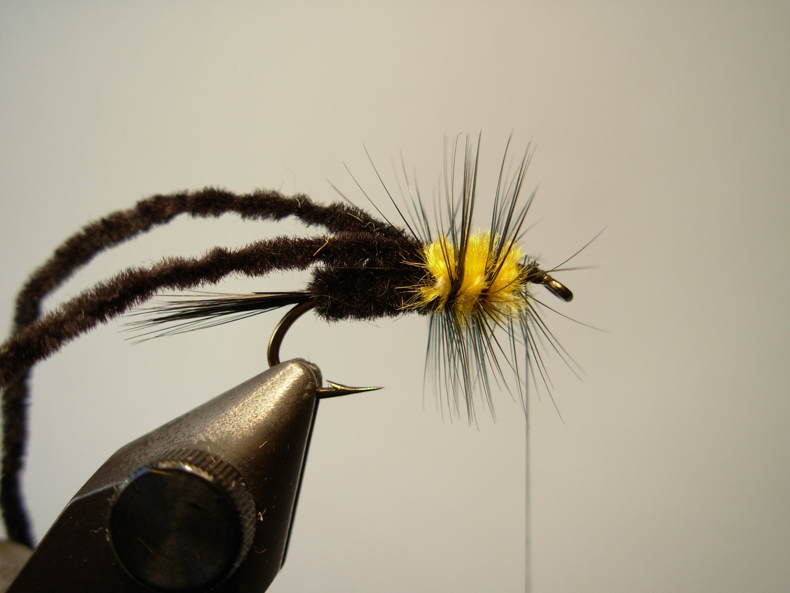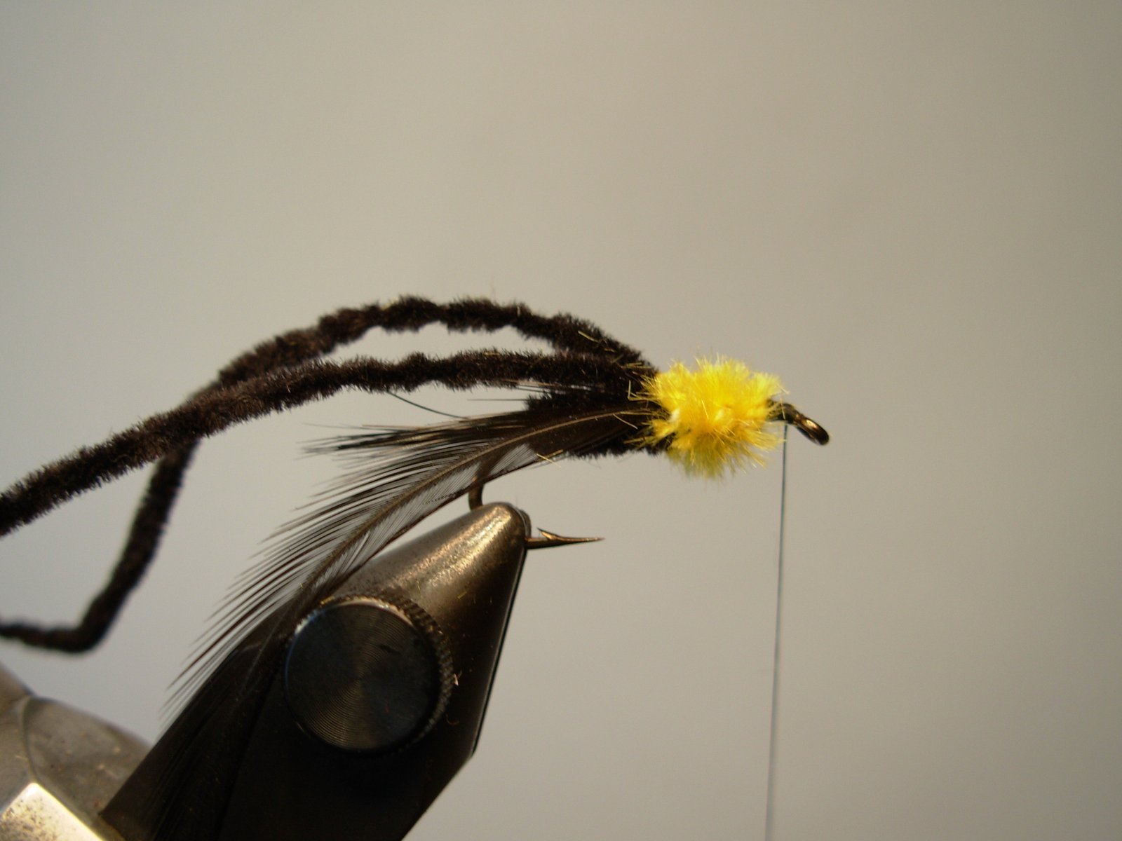 Atar además pegadito al abdomen la pluma de gallo negra y en el mismo punto el chenille amarillo