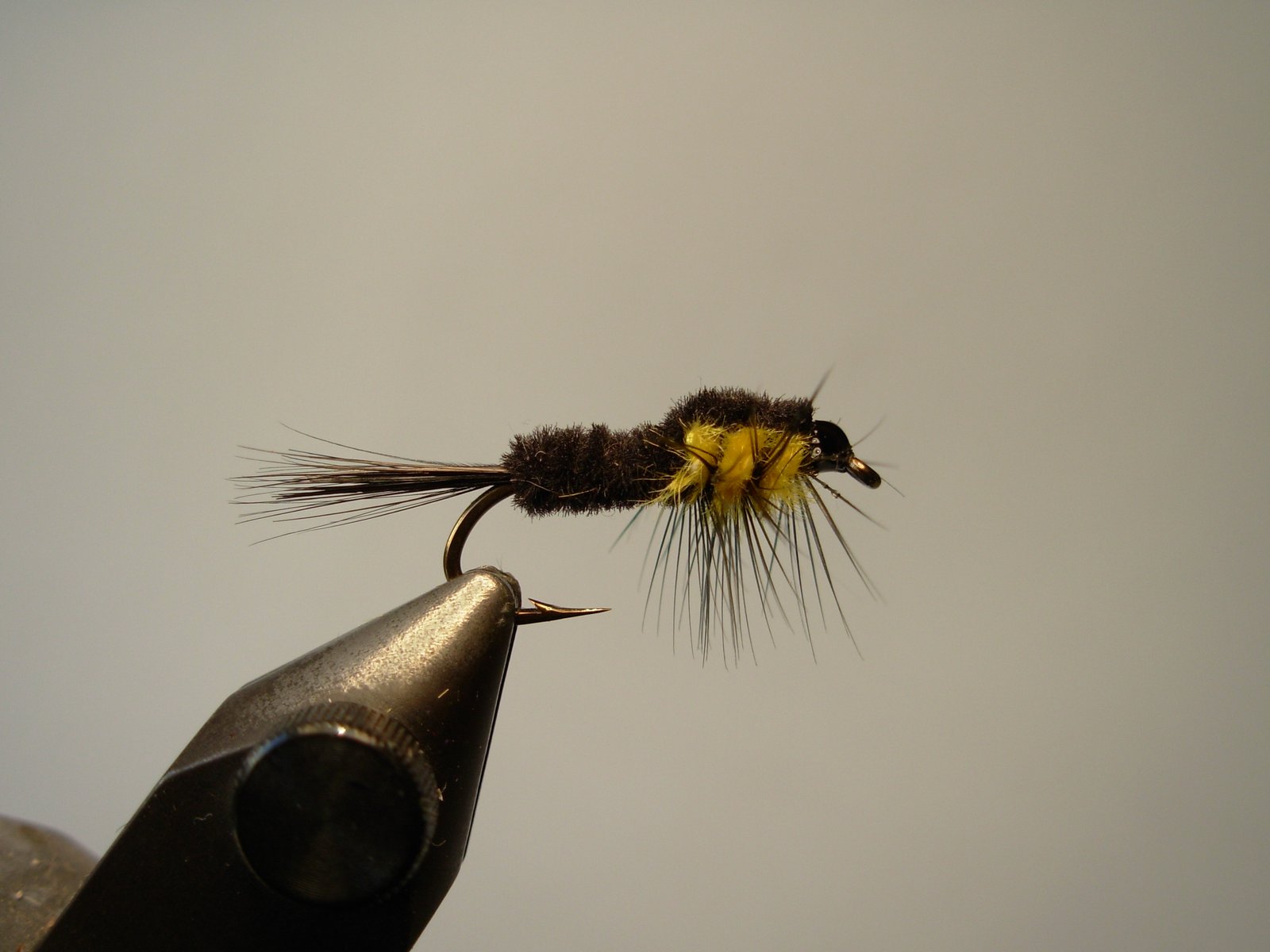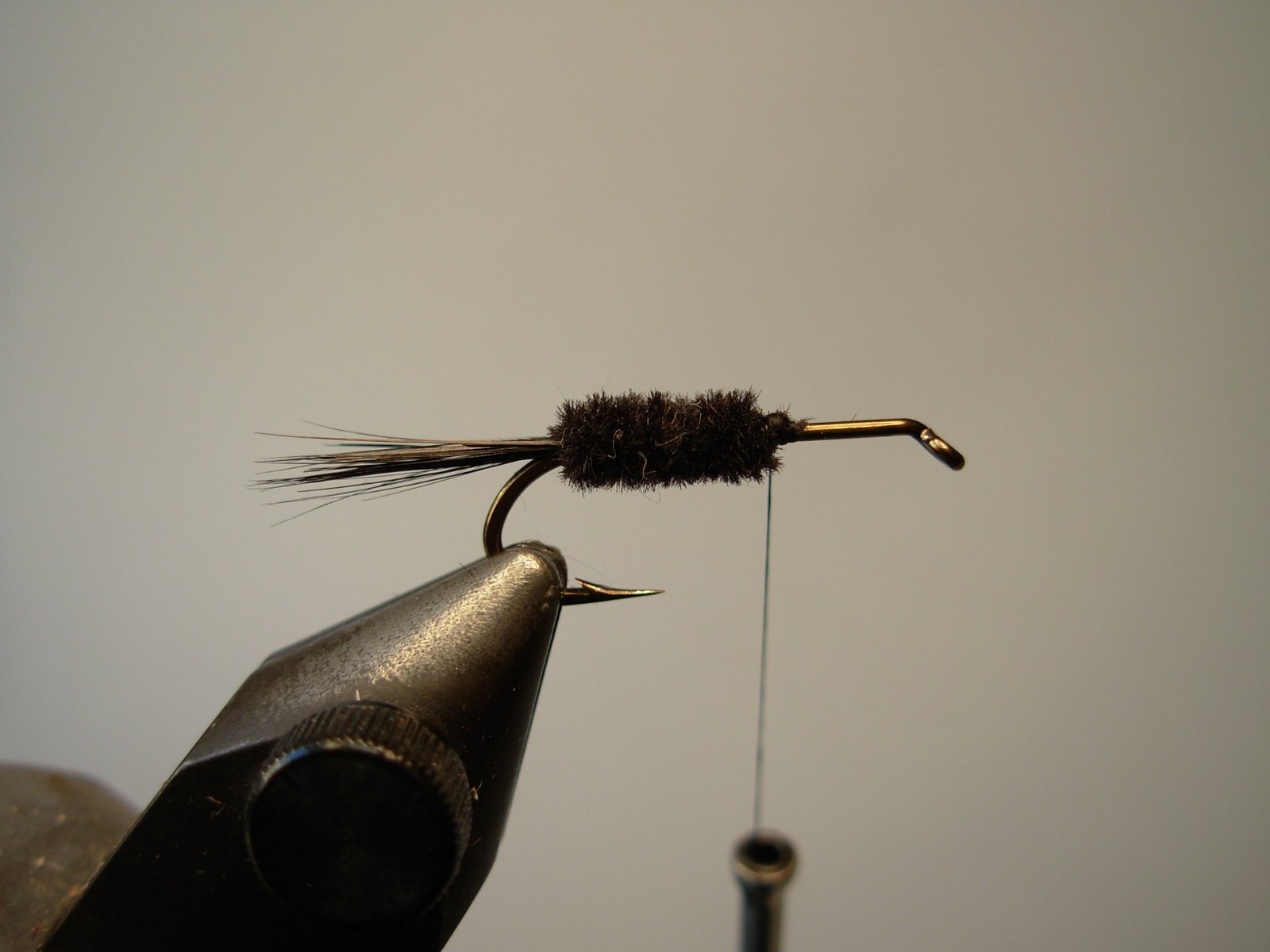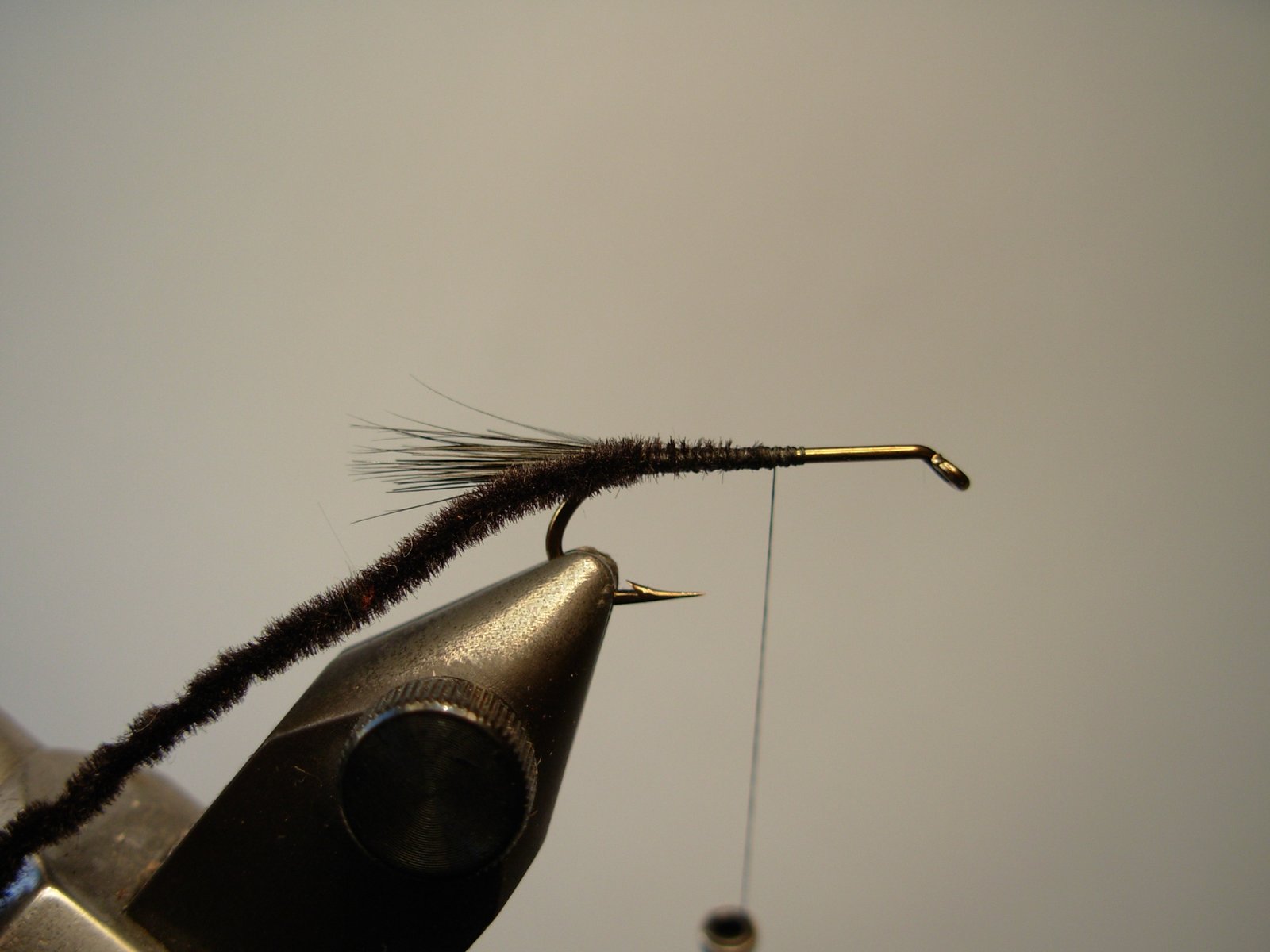 En la original se usa chenille común para toda la mosca; a mi particularmente me gusta mas confeccionar el abdomen y la caja de alas con vernille ya que queda mas estilizada.