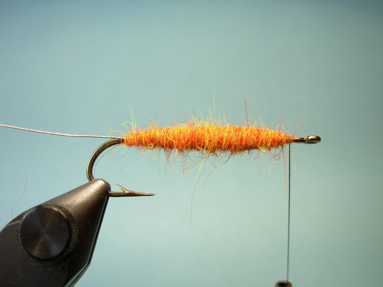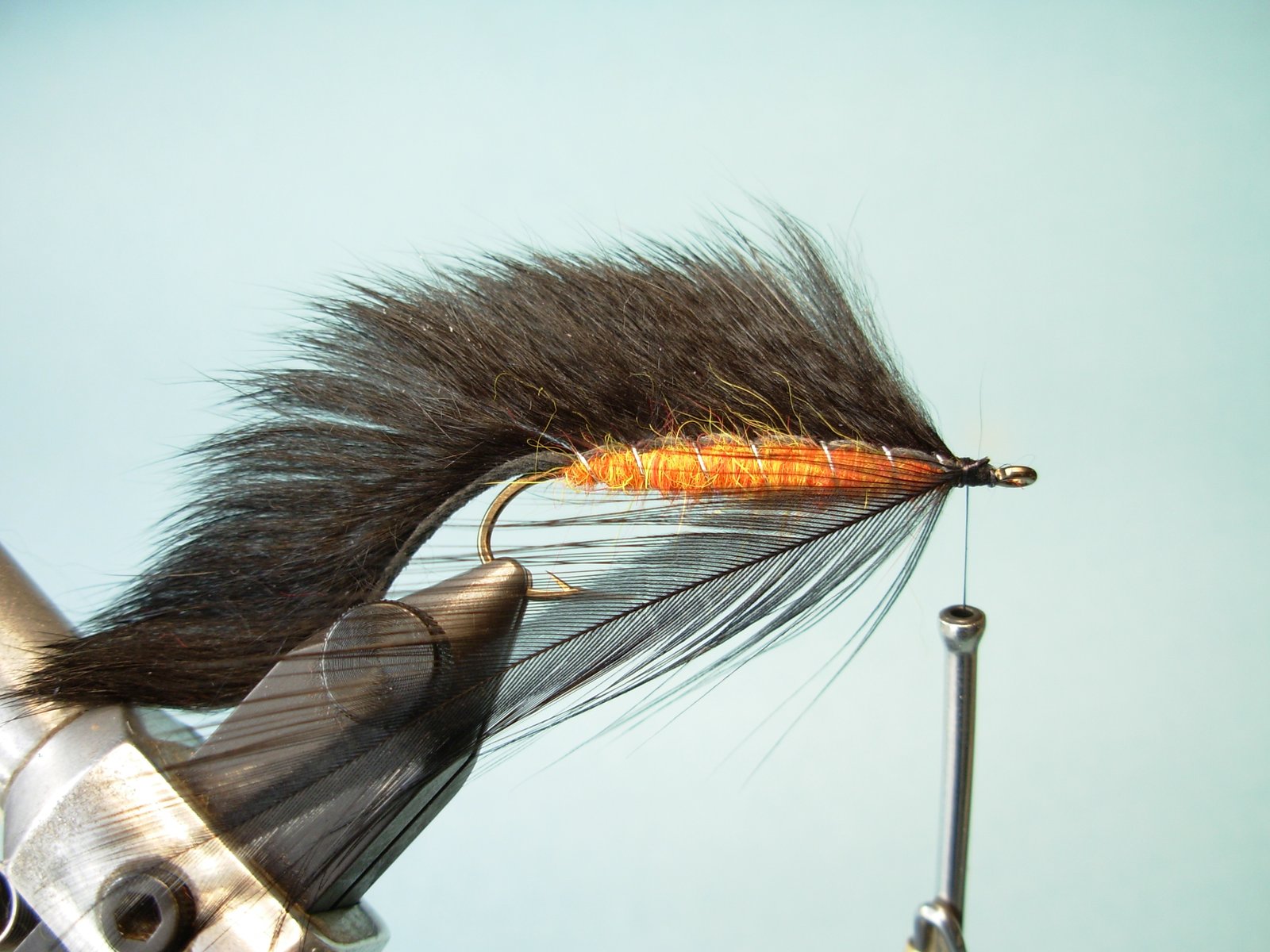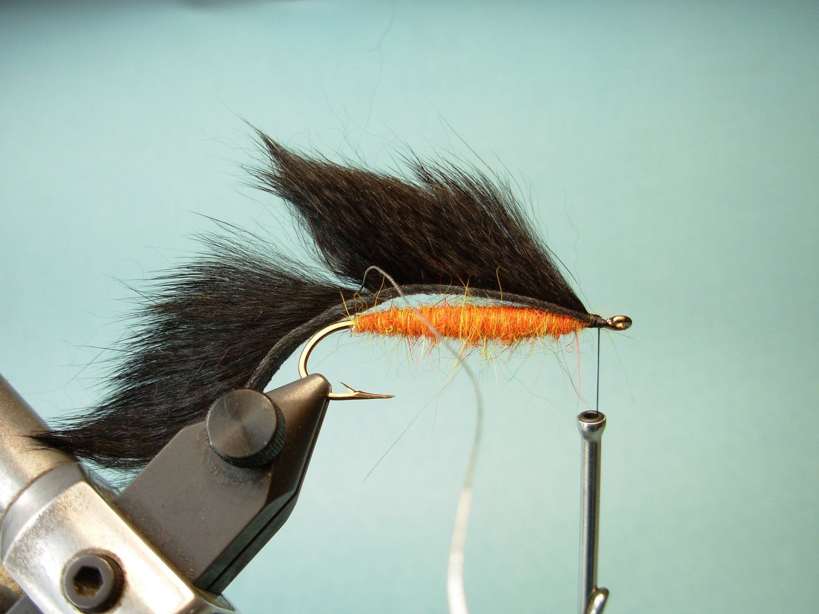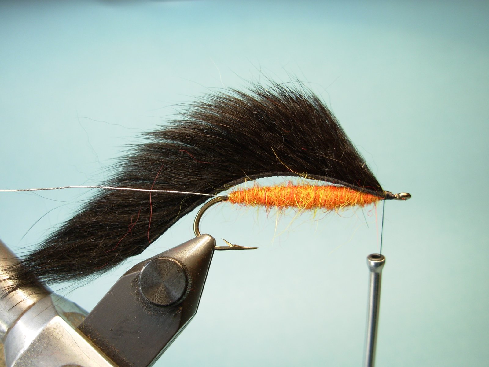 Si bien lo mas común es atarla con piel de conejo, en tamaños pequeños conviene usar pieles que tengan pelos mas cortos pues sino quedaría muy desproporcionada (ej.: ardilla, visón…) y en caso de querer hacerlas mas grande las partes de pelo mas corto de zorro nos permite lograr moscas mayores (claro que sin exagerar pues luego costará lanzarlas pues la piel se hidrata y se torna pesada).