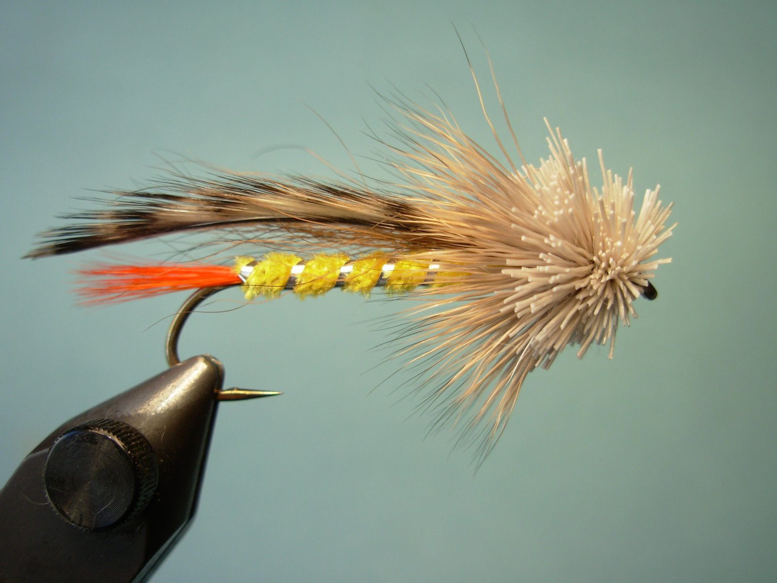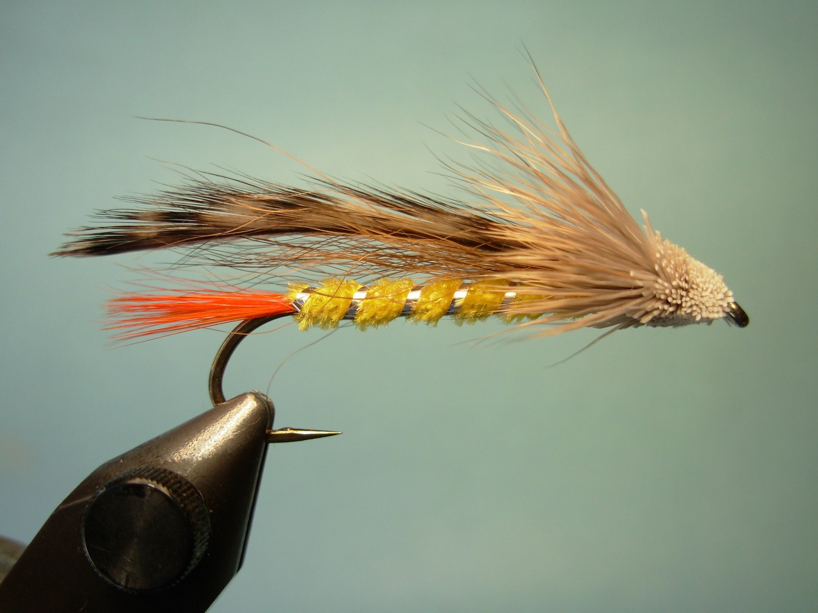 Mario Capovía del CetEl equipo de cualquier pescador inquieto se va modificando a través de los años…novedades que marcan un nuevo rumbo en concepto de cañas, reels, cajas, bolsos, etc., dejan obsoletos y guardados en un cajón muchos elementos que tal vez nunca más utilice a pesar de que estén en perfecto estado. Y así también sucede con nuestras moscas, pues muchas de ellas, que han sido caballitos de batalla en otras épocas, han caído en desuso. Y no es que no sean efectivas, sino que simplemente se han dejado de mencionar y las nuevas camadas de mosqueros ni siquiera saben que han existido. Entre esas moscas se encuentra la “Spuddler”, que comercializó durante décadas Pepe Delgado bajo su tan conocida marca “Boyadel”.En los recetarios estadounidenses está catalogada como una imitación de un “Sculpin” (pequeño pez forrajero del Hemisferio Norte que también inspiró a Don Gapen para crear su revolucionaria Muddler Minnow).Tiene un diseño poco común para un streamer de ala de pluma ya que esta va de plano sobre el cuerpo y el perfil más ancho solo se aprecia desde arriba o abajo, al revés de las convencionales. De fácil confección salvo por su cabeza muddler (que le complica la vida a los atadores menos experimentados), se las utilizaba en tamaños #2 y # 4 para tentar a las grandes arco iris y las enormes marrones de primera y última hora. El corte plano en la parte inferior de la cabeza de pelo de ciervo, sumado al poco volumen de este estilizado streamer, permite que este profundice más que las muddlers de cabeza cónica. Podemos encontrar algunas diferencias en la composición de los materiales de esta mosca en distintas publicaciones, pero la silueta es siempre la misma, por lo cual Ud. puede variar colores y tipos de material para las distintas partes, sin desvirtuar el diseño. Veamos entonces el proceso de atado de la Spuddler, sin descartar la posibilidad de confeccionarla también en tamaños más pequeños para su utilización con los equipos tan livianos de los cuales disponemos hoy día.