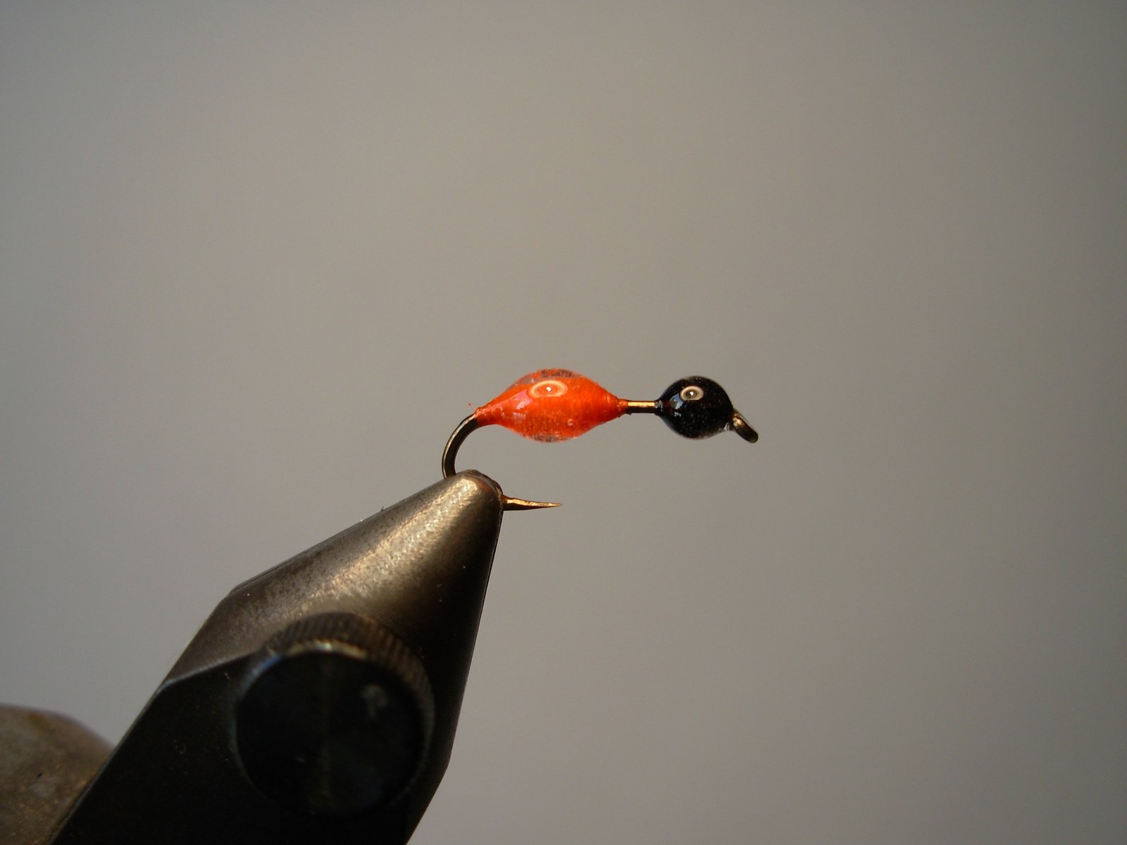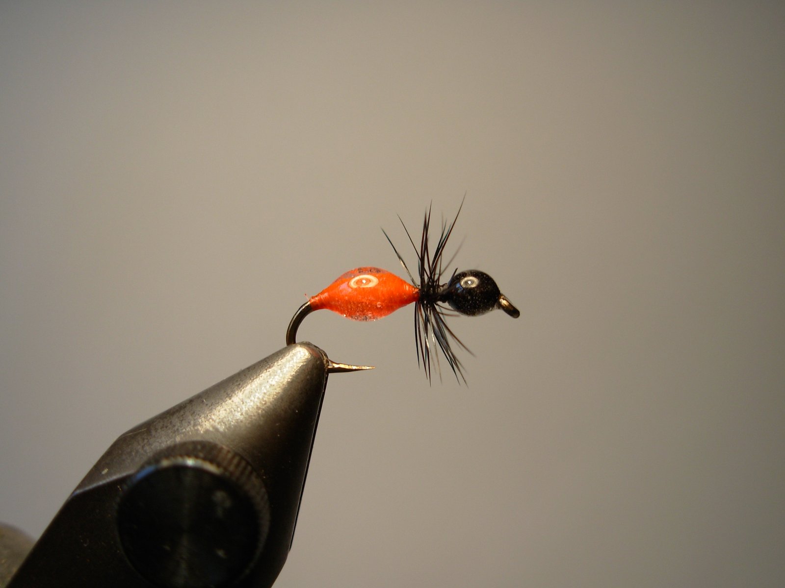 De las tantas imitaciones me pareció interesante proponer la Transpar-Ant que encontré en el libro Fly Patterns de Umpqua y Randall Kauffman. Es muy similar a las comunes hormigas laqueadas, pero en este caso la transparencia y brillo se la otorga una sola capa de epoxi evitando así tener que dar varias capas de esmalte común (lo que suele ser bastante molesto, ya que hay que esperar que se seque la anterior para volver a aplicar otra y así sucesivamente hasta que la mosca toma cuerpo).