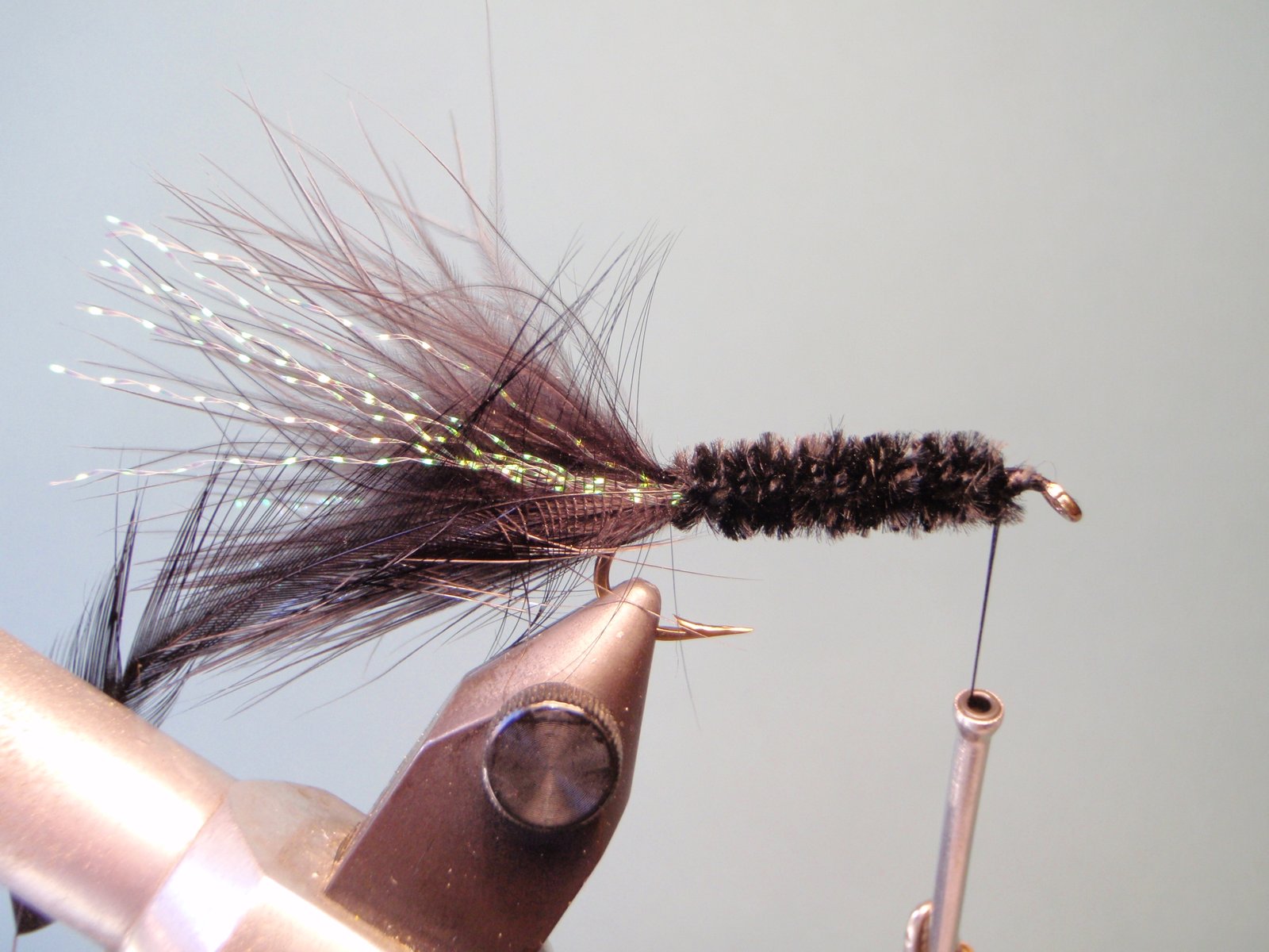 Atar por el mismo punto que la pluma el Chenille negro.