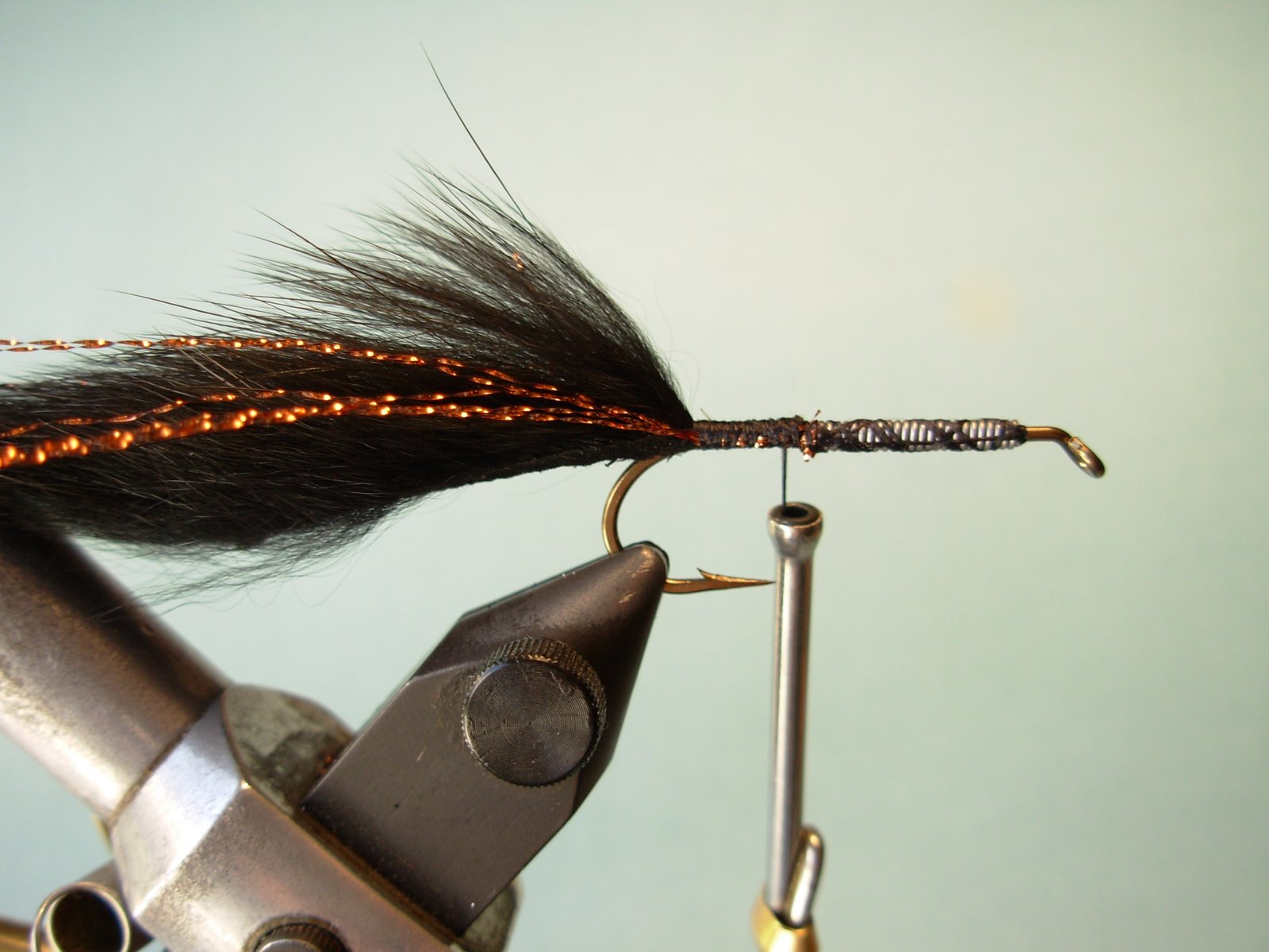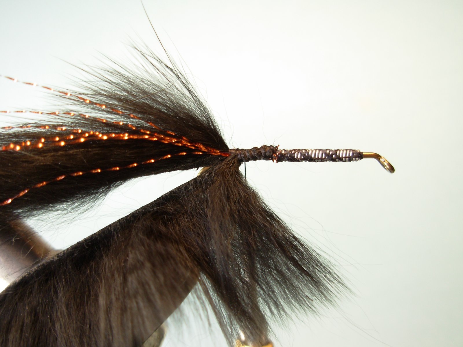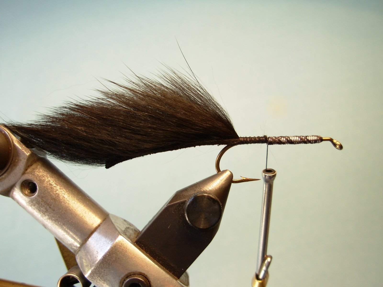 Atar la tira de conejo (Zonker Strip) que compondrá la cola de la mosca, cuyo cuero tenga un largo equivalente a una vez y media la pata del anzuelo (aprox).