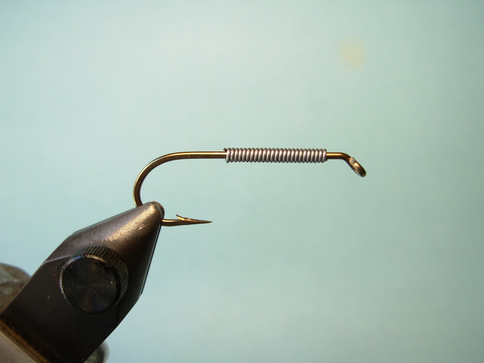 Colocar el plomo en los dos tercios anteriores de la pata del anzuelo dejando unos tres mm libres junto al ojo.