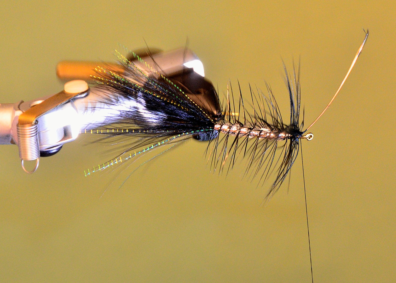 Marío Capovía del CetDel negro al blanco, pasando por todo el espectro de los colores, con mas o menos brillo en la cola (que puede ser corta, larga o muy larga), cuerpo de chenilles brillantes u opacos, lastradas con alambre de plomo o bead heads, cabeza simple o Muddler, con o sin patas de goma, etc. etc. etc., la Wooly Bugger es una de las moscas que mas variantes soporta, ya que los cuatro materiales de base que se utilizan para construirla (marabou, pluma de gallo, chenille y brillo de flashabou o cristal flash), mas todos lo agregados que se le han ido incorporando con el tiempo, permiten una infinidad de variantes y cada atador los combina a su gusto. Las alternativas son innumerables.