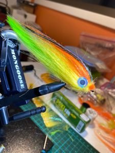 Carlos VillaggiCuando de atado de moscas de dorado se habla, es innegable que, durante las últimas décadas, los materiales sintéticos han avanzado mucho y ganado un enorme espacio entre los atadores. La diversidad de fibras y colores que fueron surgiendo se hizo cada vez más amplia. Sin embargo, entre todos ellos, el craft fur tiene una presencia destacada y no es una casualidad que así sea. Por el contrario, sea por su bajo costo, la capacidad de movilidad en el agua, el volumen que puede generarse en las moscas, y la relativa sencillez que nos ofrece al momento de utilizarlo en nuestros atados, justifica ampliamente su firme adopción en esta tarea. Generalmente, el modo adoptado consistió en la aplicación por mechones sucesivos, a lo largo de la cara superior e inferior de la pata del anzuelo; o bien en dubbing loop para la conformación de collares. El resultado eran moscas de amplio perfil y relativamente plano.