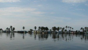 El día era agradablemente nublado, la temperatura fresca y el entusiasmo crecía con cada kilometro recorrido. El trayecto cruza extensas tierras llenas del verdor del invierno y escasos puestos donde el ganado se congregaba para evitar las tierras inundadas por las recientes lluvias. La amplitud de la boca del Escalante es impresionante y justo al salir al lago, tomamos rumbo al norte, pasando la desembocadura del Río Catatumbo, y el pequeño poblado de palafitos del Congo Mirador en la distancia contra la costa cubierta de manglares y frondosos árboles. El agua turbia, típica de un rio de ese caudal en nuestras latitudes, se veía interrumpida por extensiones cubiertas de algas y pequeñas islas de lirios de agua y troncos flotantes, traídos por el río.