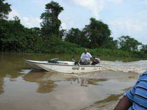 La mañana fue fresca y de nuevo nublada. La llegada de las lluvias a la zona ha sido prematura y la amenaza de lluvia era constante. Un joven del pueblo de nombre Johnkelvis era nuestro botero. Nunca había visto a nadie pescar con mosca y nos aseguró que éramos los primeros. Esto se evidenció por la tarde cuando al regresar a almorzar, le comentó a los otros locales de nuestro nuevo método. Alexis, el cacique local, insistió en acompañarnos en otro bote por la tarde para ver con sus propios ojos la novedosa técnica.