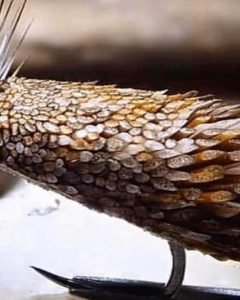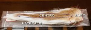 Muy parecido al pelo del lomo, aunque más largo y de mayor aire en su base. Aplicable a moscas de cabeza muddler, moscas bullet y cabezas Andino.