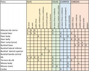 Los pelos de cérvidos aplicados al atado de moscas